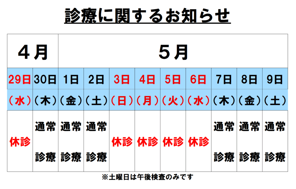 ゴールデンウイークの診療に関するお知らせ